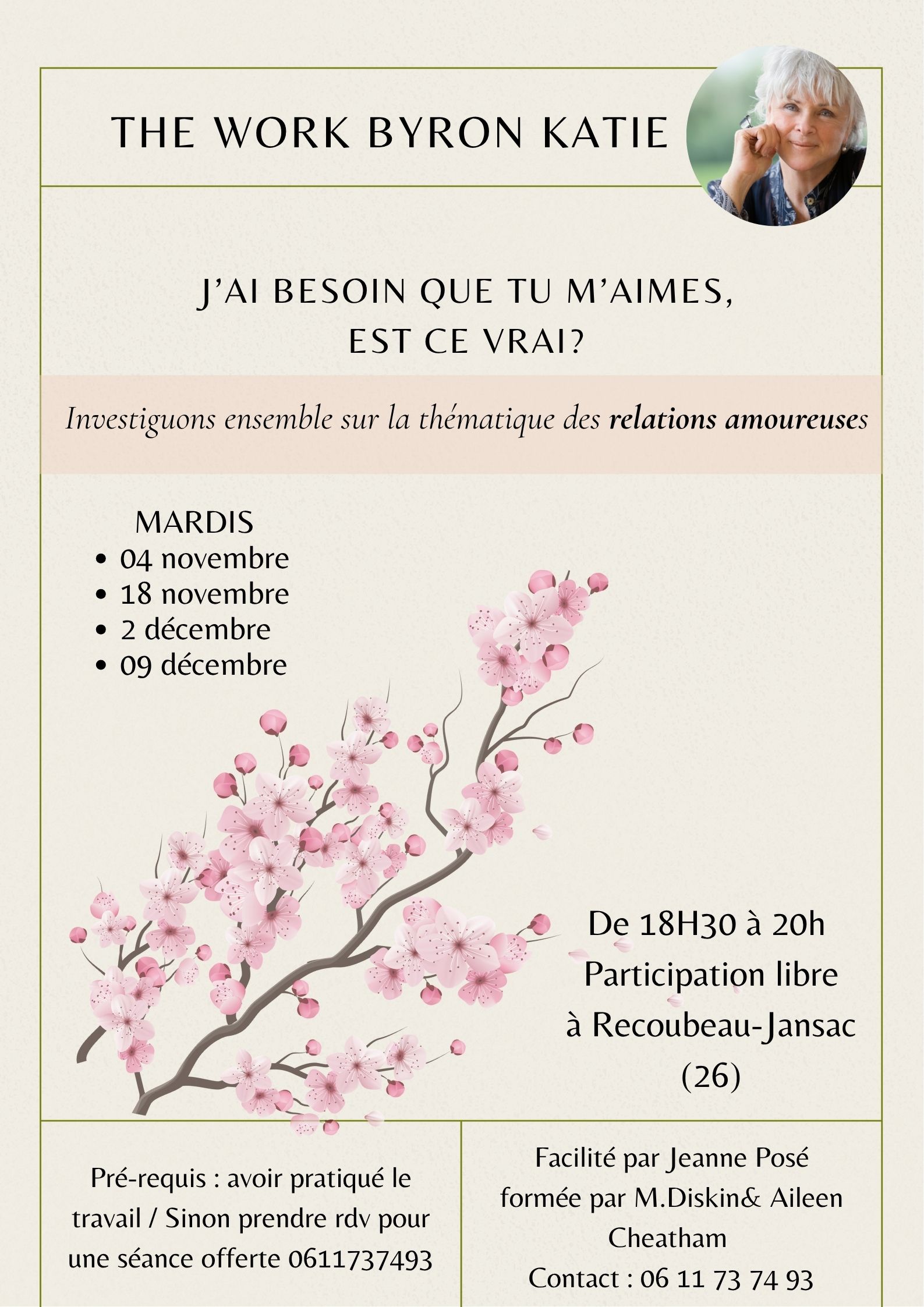 Deux mardis par mois remettons en question les pensées stressantes qui nous empêchent de goûter à notre bonté fondamentale et à la nature de la relation.